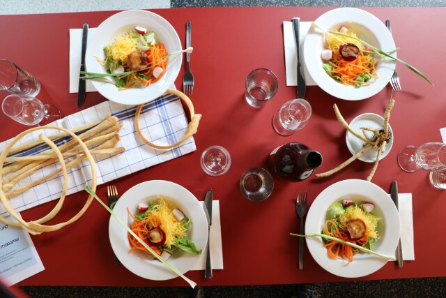 Eine Führung, ein Drei-Gänge-Menü und gute Gesellschaft: Kunst über Mittag! Wir laden herzlich zu einem Mittagessen in der Kunst Halle ein. Zum Auftakt führen wir durch Cemile Sahins aktuelle Ausstellung, bevor wir an einer langen Tafel im Foyer von einem Gang zum nächsten Gedanken schweifen. Bon appétit!